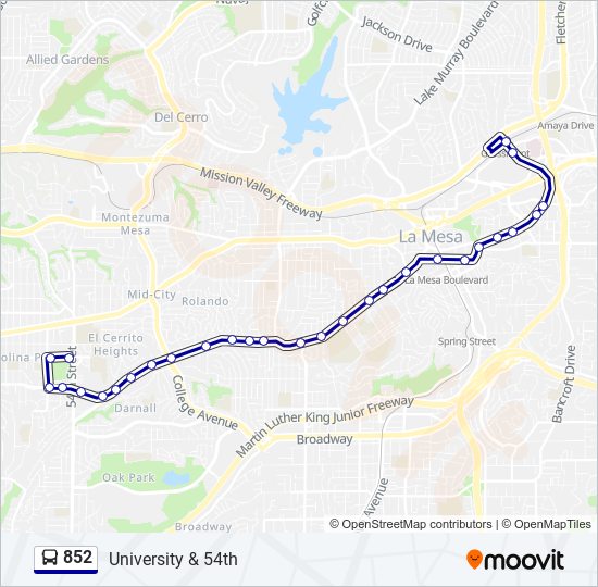 Route 852: University & 54th Grossmont Transit Ctr | Bus