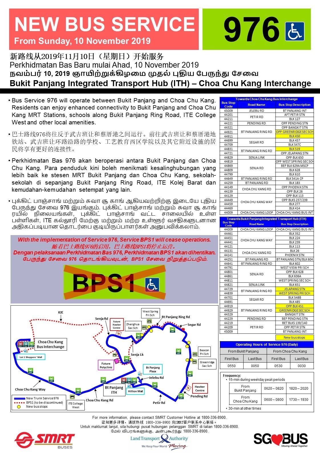 Service 976 Launch Poster & Discontinuation of Bus Service BPS1